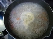 アクの取り方 水を入れたボウルを用意し、おたまでアクをすくいます。 一度アクをとったら、ボウルの中の水でしっかり洗い落としてから次をすくうようにします。 煮汁を煮立ったままにしておくとアクが散ってしまうのでアクが浮いたらすぐに火を